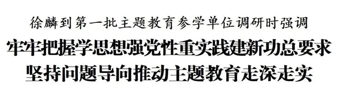 每到一处,徐麟都主持召开座谈会,听取各单位主题教育开展情况汇报。他指出,开展主题教育是党中央作出的重大决策部署,是今年党建工作的重中之重。各参学单位党组(党委)要更加深刻领悟“两个确立”的决定性意义,衷心拥护“两个确立”、忠诚践行“两个维护”,把感恩之心转化为忠诚之志、维护之行、奋进之力,坚决扛起政治责任,努力在以学铸魂、以学增智、以学正风、以学促干上见实效。要把理论学习作为主题教育的主线,坚持全面学、专题学、重点学,认认真真读原著学原文悟原理,全面系统掌握习近平新时代中国特色社会主义思想的科学体系、核心要义、实践要求,更好用以武装头脑、指导实践、推动工作。要持续深化调查研究,带着问题去调研,发现问题、破解难题。要把开展主题教育同推动本部门本单位的中心工作结合起来,引导党员干部树立和践行正确政绩观,把主题教育激发出来的热情和干劲转化为推动高质量发展的实际成效。要扎实抓好检视整改,坚持边学习、边对照、边检视、边整改,动态管理问题清单,开展突出问题专项整治,让人民群众实实在在感受到变化。各参学单位党组(党委)主要负责同志要认真履行第一责任人职责,亲自谋划、靠前指挥、督促指导,发挥好示范表率作用,班子成员要认真履行“一岗双责”,高标准高质量推动主题教育扎实开展。