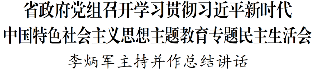 李炳军强调,要以强烈的自我革命精神,持之以恒加强省政府党组自身建设,不断提高履职能力水平。要坚持不懈加强党的创新理论武装,把习近平新时代中国特色社会主义思想作为终身必修课,反复深入学,持续跟进学,在学用转化上下更大功夫。要牢固树立和践行正确政绩观,加快转变发展方式,践行以人民为中心的发展思想,坚持实事求是、反对弄虚作假,切实创造经得起实践、人民、历史检验的实绩。要担当作为推动经济社会高质量发展,狠抓党中央、国务院和省委、省政府重大部署落实,深入研究问题破解难题,切实防范化解重大风险。要坚持反腐败斗争永远吹冲锋号,驰而不息转变作风,严肃党内政治生活,严格依法履职用权,推动政府系统全面从严治党向纵深发展。要巩固拓展主题教育成果,主动做好第一批第二批主题教育有效衔接,上下联动抓实问题整改,让广大群众真切感受到主题教育实实在在的成效。