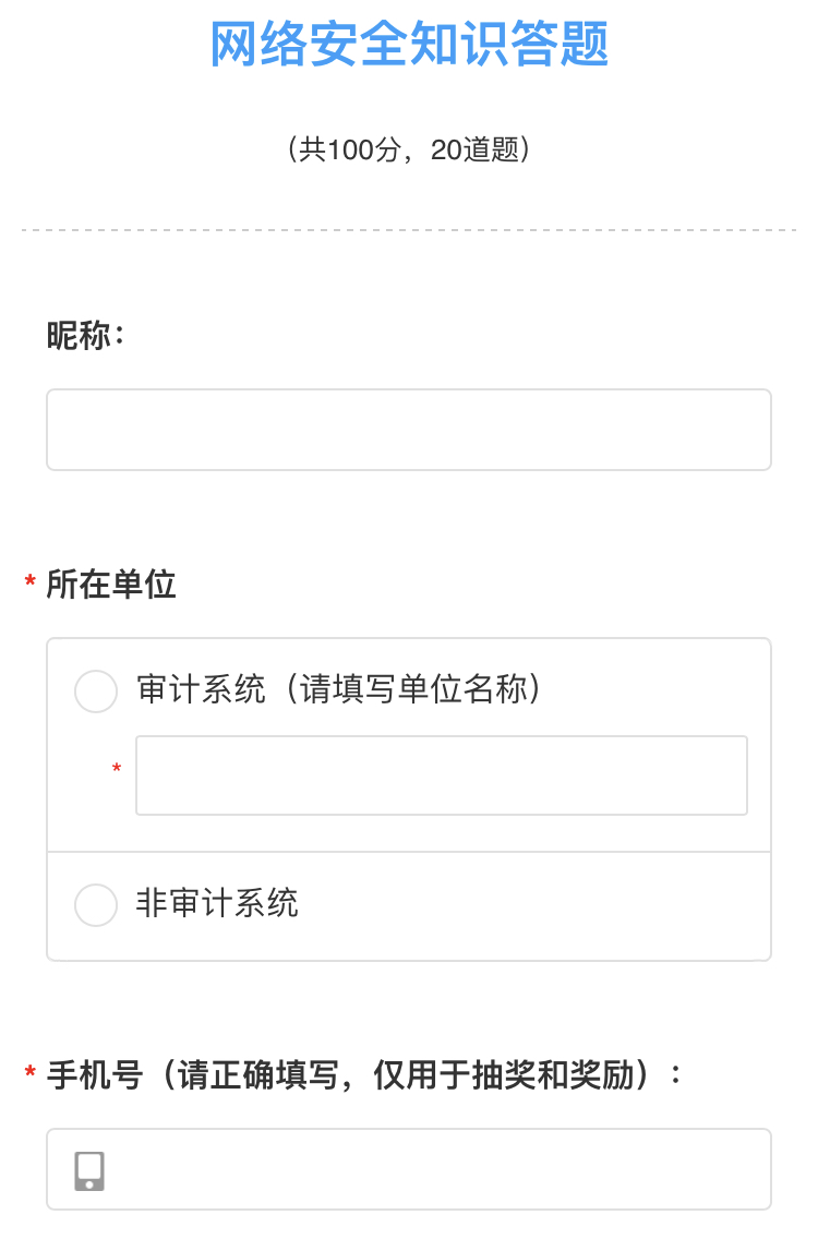 3.进入答题页面,填写正确的手机号(仅用于抽奖和奖励),完成答题后提交。